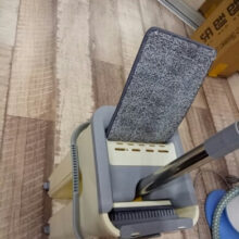 Please make sure the pad hangs on the panel teeth, thus it will not get off when you use the mop.