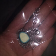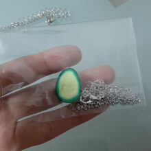 These Avocado necklaces come in a set of one necklace with the heart-shaped stone and the other without.