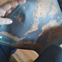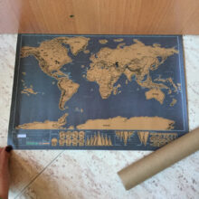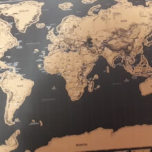 Covered with premium gold foil which lays above a beautiful colorful world on a high-end matte black sheet. We use some of the finest materials to create the most stunning maps.