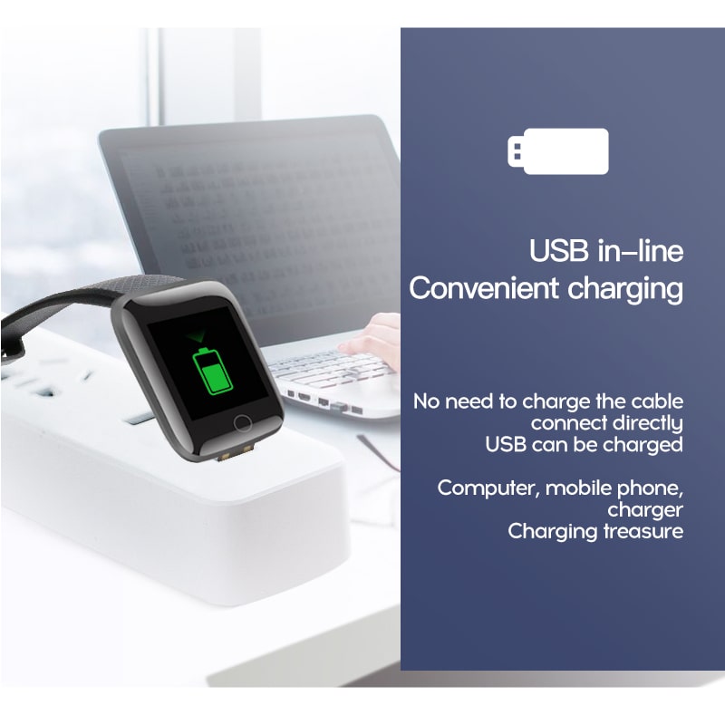 ● The charging port is a USB interface, remove the wrist strap so you can plug directly into the USB or charging head, easy and convenient.